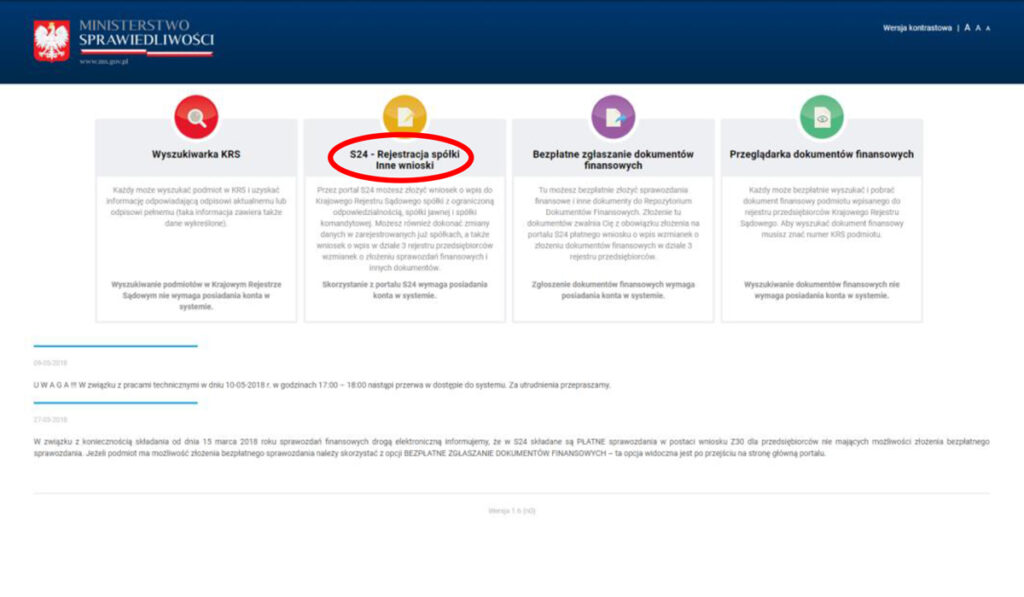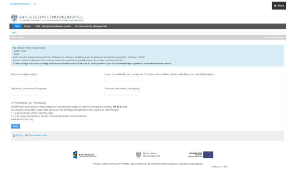 1. Зарегистрируйтесь на сайте https://ekrs.ms.gov.pl/