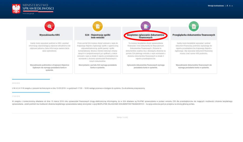 — Перейдите на сайт https://ekrs.ms.gov.pl/ и выберите “Бесплатное предоставление финансовых документов”.